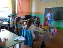 Po części oficjalnej zaproszono wszystkich nauczycieli do udziału w spotkaniu prowadzonym przez panią Dorotę Dziamską. W tym czasie dzieci podzielone zostały na dwie grupy i wzięły udział w warsztatach origami prowadzonych przez Małgorzatę Pachołek – organizatora tychże warsztatów i w warsztatach z haftu prowadzonych przez Jadwigę Pierzchałę i panie ze Stowarzyszenia Miłośników Tradycyjnego Rękodzieła Ludowego i Artystycznego Lud-Art. Po trudach nauki zarówno uczniowie jak i nauczyciele udali się na poczęstunek.
